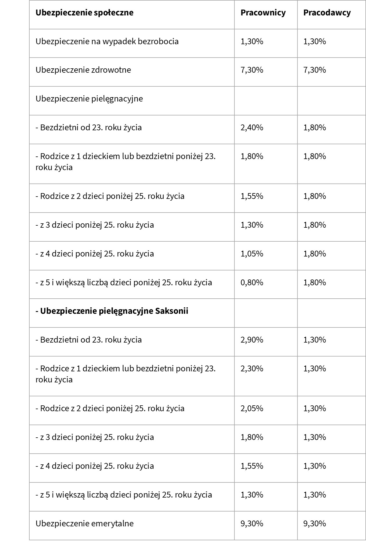Składki na ubezpieczenie na wypadek bezrobocia opłaca się w kraju zatrudnienia. W Niemczech stopa procentowa odprowadzana na ten cel wynosi w 2025 roku zarówno dla pracodawców jak i dla pracowników po 1,3% wynagrodzenia brutto.